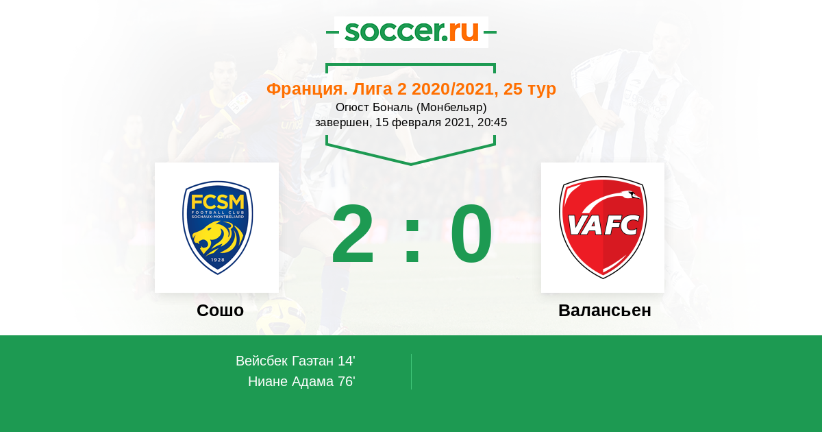 14' (1:0) Вейсбек Гаэтан (28) (Сумаре Бриан (7))