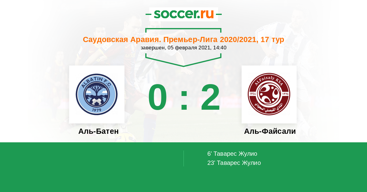 6' (0:1) Таварес Жулио (19) (Аль Фики Ахмед (15))