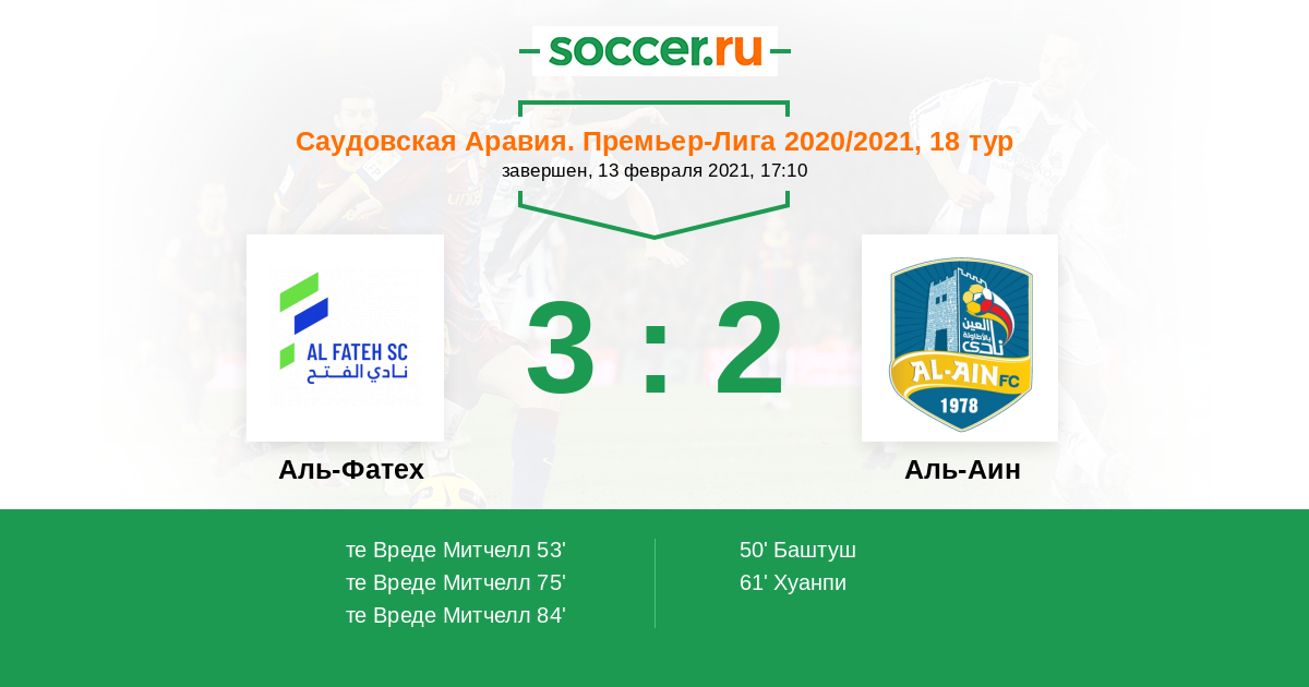 84' (3:2) те Вреде Митчелл (9) (Эль Заган Али (26))