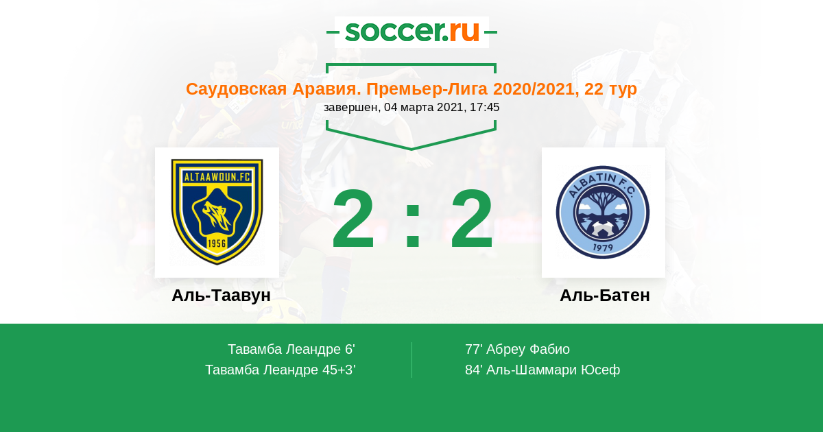 45+3' (2:0) Тавамба Леандре (3) (Альнабит Сумайхан (8))