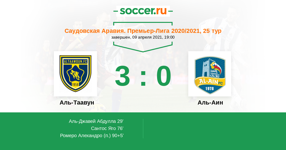 29' (1:0) Аль-Джавей Абдулла (29) (Тавамба Леандре (3))