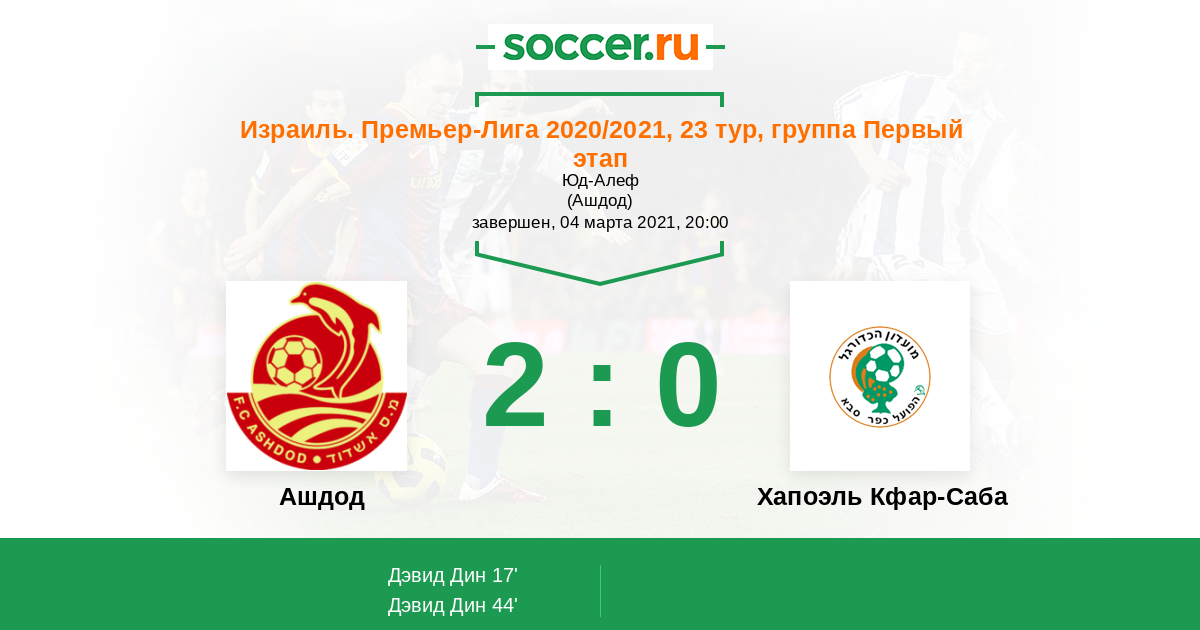 Запасные: 19 Ториал Став (с 63'), 23 Абу Акел Фирас (с 63'), 17 Аджей Хайфорд (с 71'), 66 Хассон Нир (с 78'), 5 Эгози Омер, 6 Канаан Мохаммад, 18 Мошал Бензион, 20 Бен Харуш Омри, 21 Маваси Хамза
