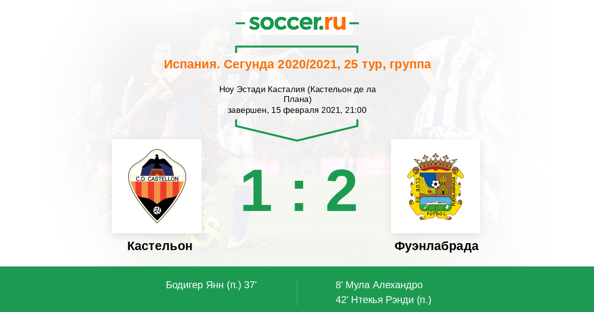 8' (0:1) Мула Алехандро (7) (Нтекья Рэнди (10))