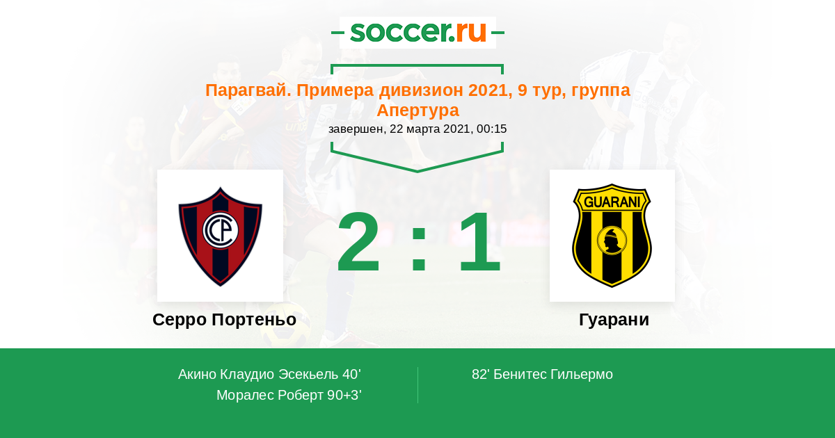 40' (1:0) Акино Клаудио Эсекьель (22)