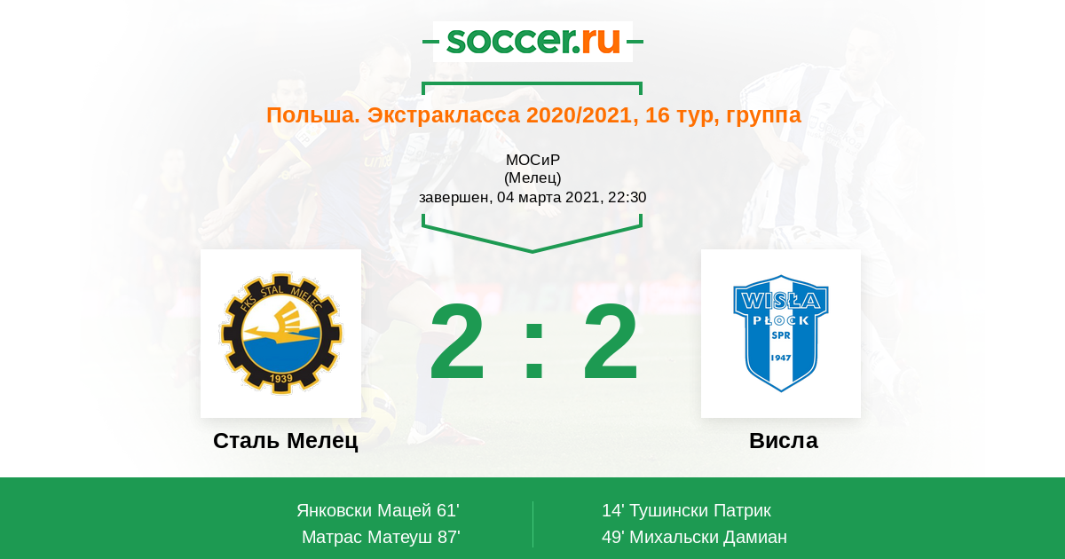 87' (2:2) Матрас Матеуш (21) (Доманьски Мацей (7))