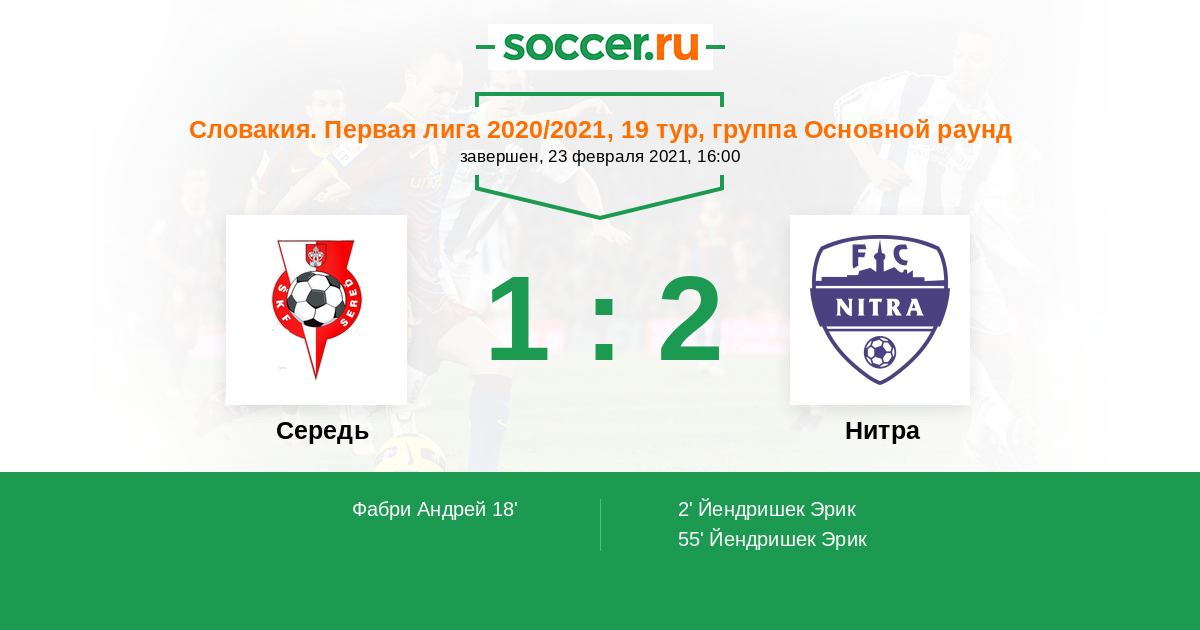 55' (1:2) Йендришек Эрик (26)