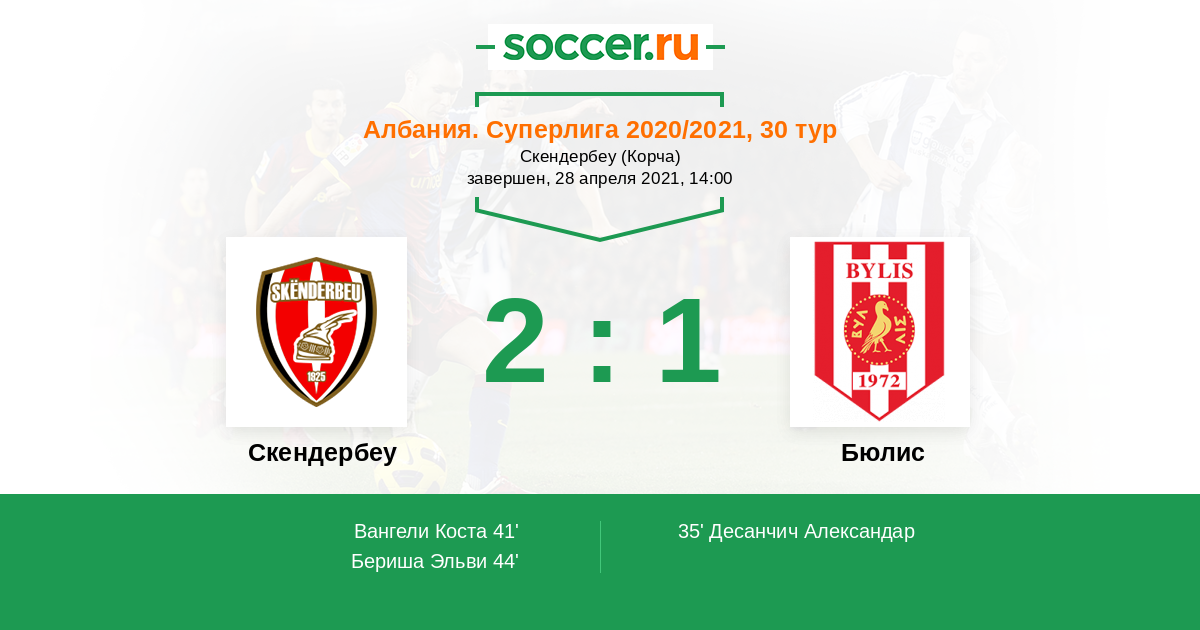 44' (2:1) Бериша Эльви
