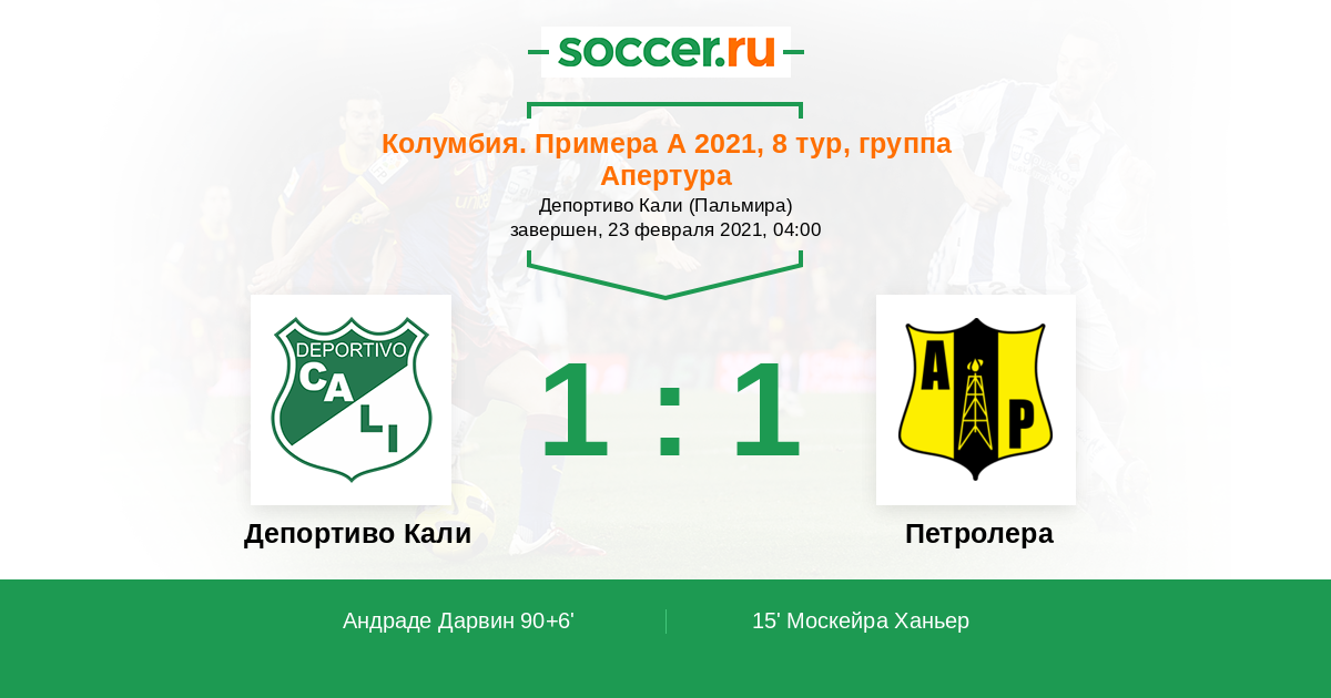 90+6' (1:1) Андраде Дарвин (27) (Рамос Джефферсон (30))