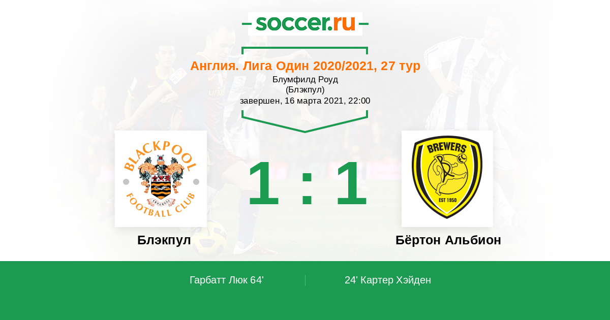 64' (1:1) Гарбатт Люк (29) (Эмблтон Эллиот (32))