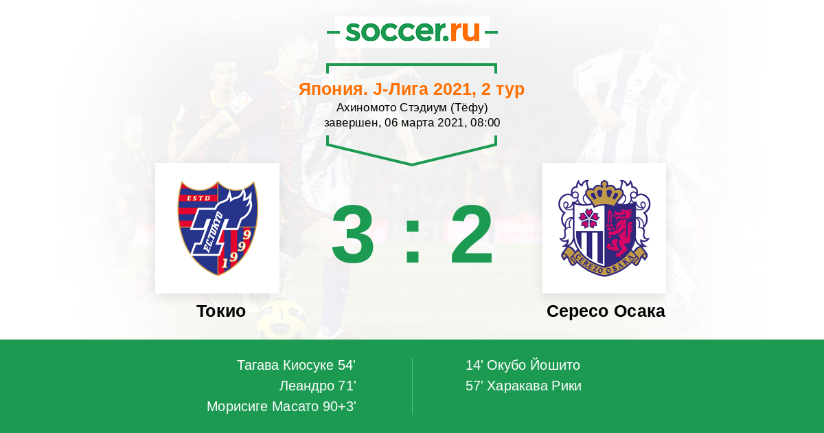 Гол90+3' (3:2) Морисиге Масато (3) (Леандро (20))