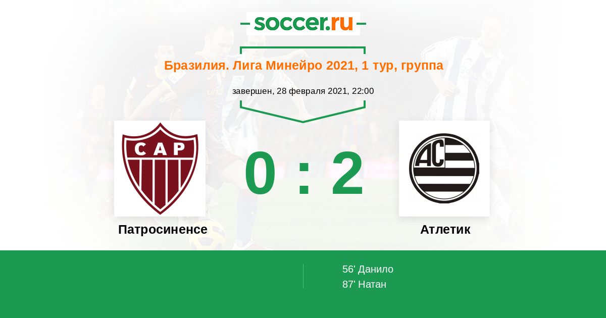 56' (0:1) Данило (3) (Натан (6))