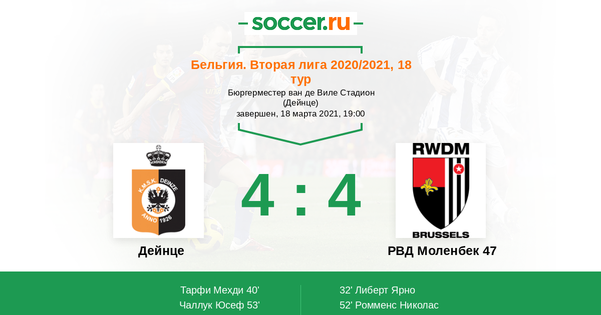 53' (2:2) Чаллук Юсеф (11) (Сталенс Алессио (7))