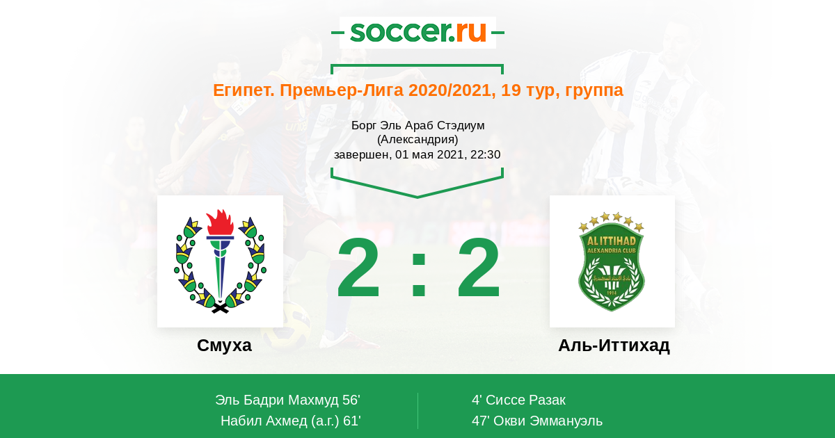 Запасные: 28 Аттиа Марван (с 60'), 11 Салех Хишам (с 74'), 18 Ибрагим Абдель Самия (с 74'), 34 Мохамед Абдель (с 82'), 9 Камар Халед (с 82'), 22 Рашед Ахмед, 23 Солиман Собхи, 6 Рахил Сабри