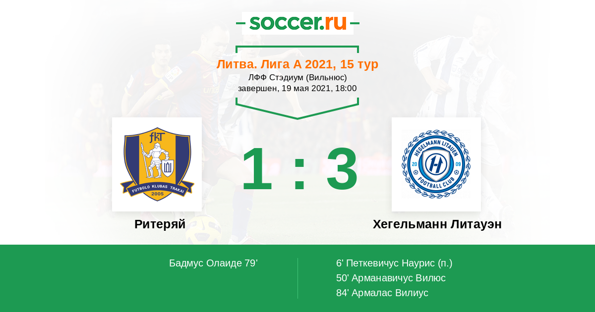 Запасные: 79 Паулаускас Валдас (с 46'), 8 Григаравичюс Миндаугас (с 60'), 10 Паулаускас Гитис (с 60'), 3 Малжинскас Дейвидас (с 71'), 44 Домбраускис Томас (с 71'), 2 Калермо Аксели, 28 Любас Хозас, 89 Виткаускас Армантас, 34 Валуконис Аугустас