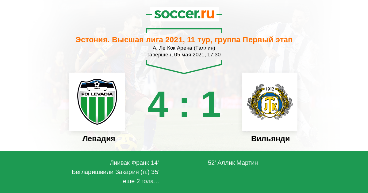 14' (1:0) Лиивак Франк (7) (Бегларишвили Закария (49))