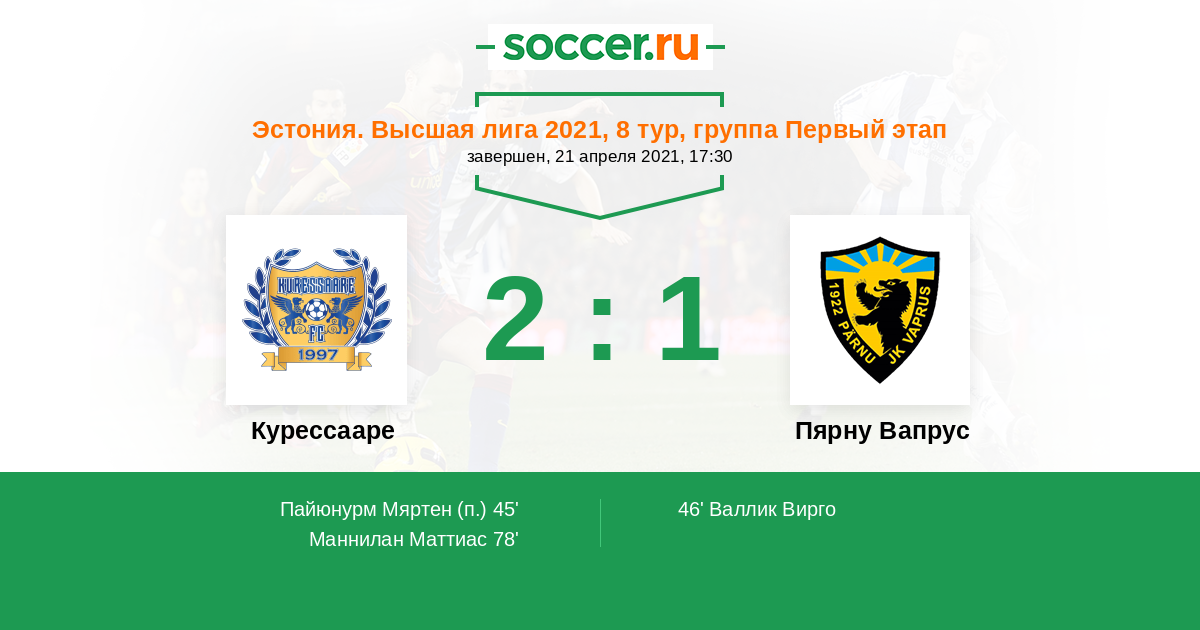 Запасные: 8 Соомре Йоонас (с 74'), 12 Кутт Роланд, 22 Миил Майро, 28 Неубауэр Танель, 35 Ермащенко Артем, 42 Пензев Стэн, 47 Ильин Александр