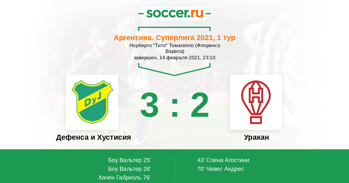 43' (2:1) Спина Агостини (38) (Хецце Сантьяго (5))