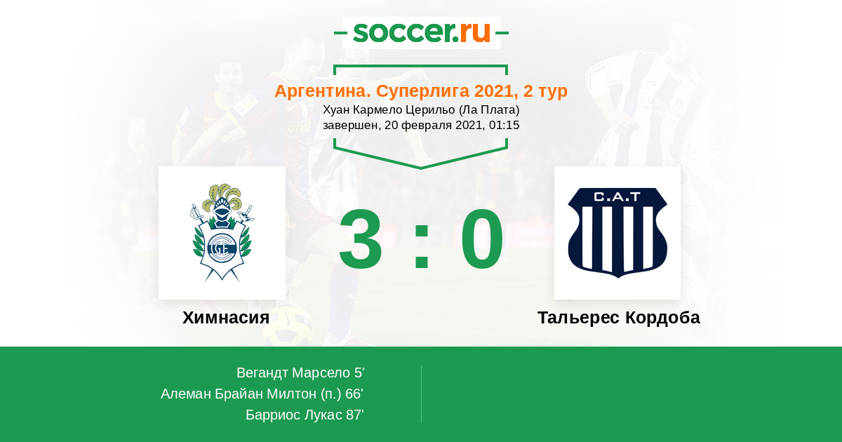 5' (1:0) Вегандт Марсело (57) (Миранда Матиас (22))