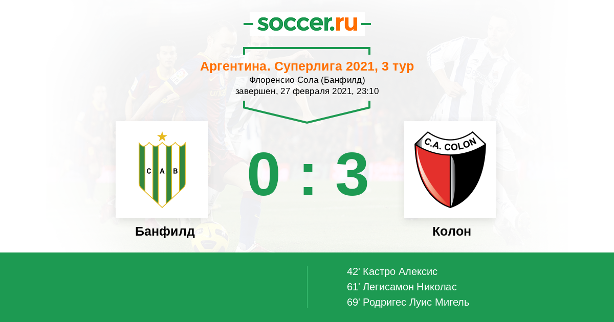 61' (0:2) Легисамон Николас (18) (Родригес Луис Мигель (10))