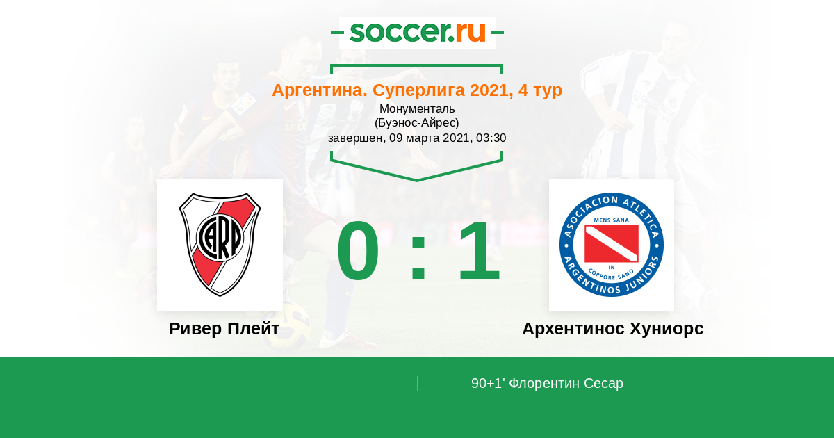 90+1' (0:1) Флорентин Сесар (10) (Карабахал Орасио (45))