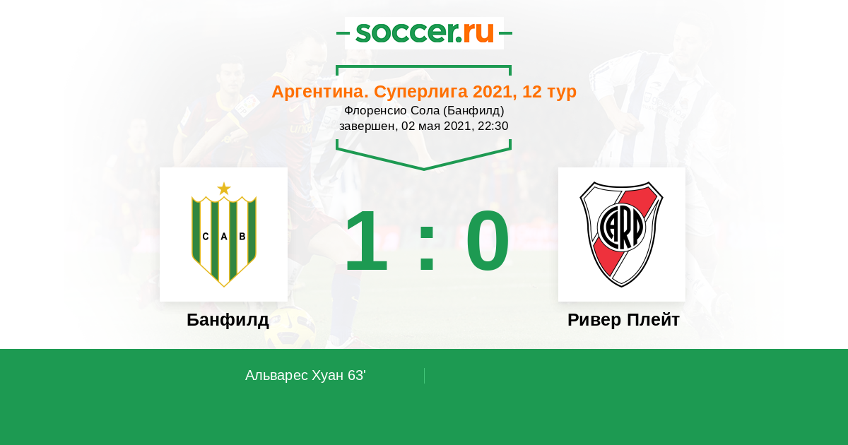 63' (1:0) Альварес Хуан (22) (Понс Лучано (29))