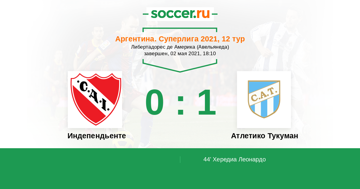 44' (0:1) Хередиа Леонардо (10) (Каррера Рамиро Анхель (23))