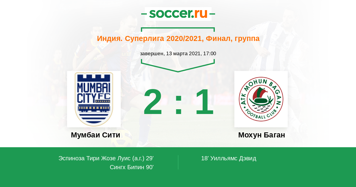 18' (0:1) Уилльямс Дэвид (9) (Кришна Рой (21))