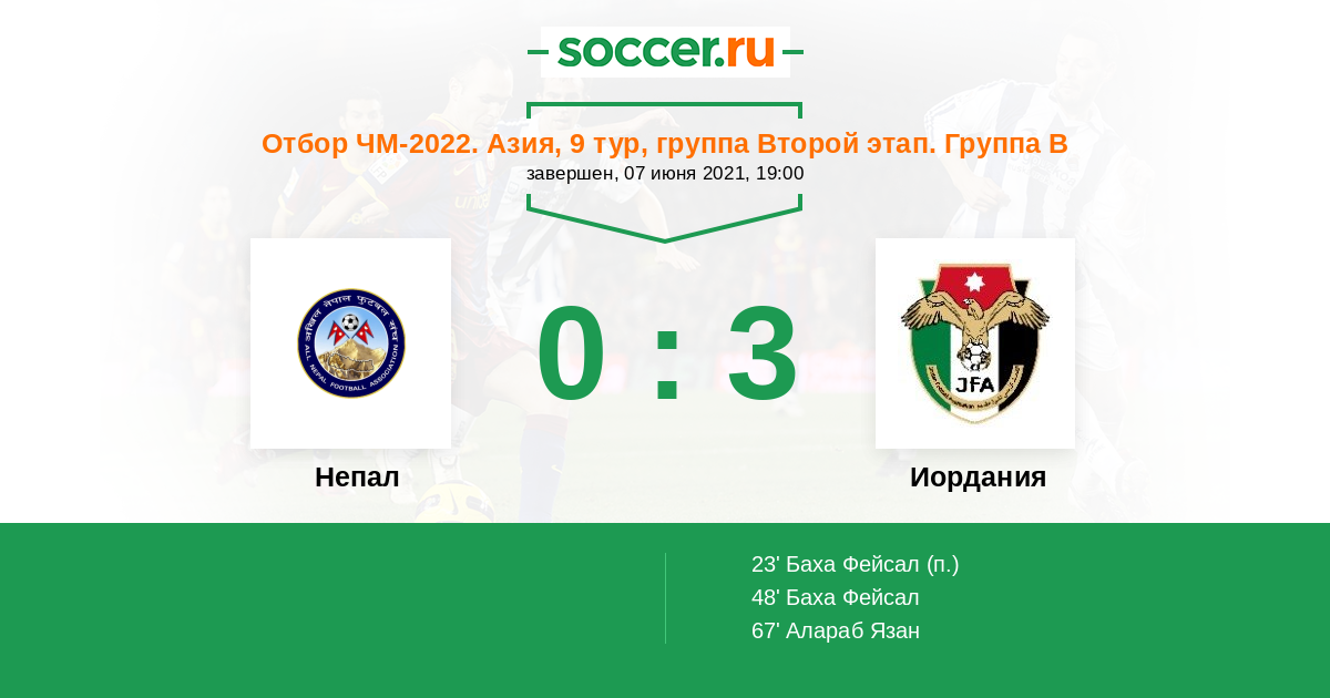 Запасные: 10 Самир Ахмед (с 46'), 11 Аль-Бахет Ясен (с 46'), 4 Бахаа Абдулрахман (с 67'), 20 Аль Дарадрех Хамза (с 68'), 8 Аль Сайфи Одай (с 80'), 1 Абдель Саттар Ахмед, 2 Ферас Зейяд, 7 Абу Зраик Мохаммед, 12 Альфахори Абдаллах, 14 Аль-Эрсан Ахмед, 19 Абу Хизаран Равад, 17 Аджалин Салем
