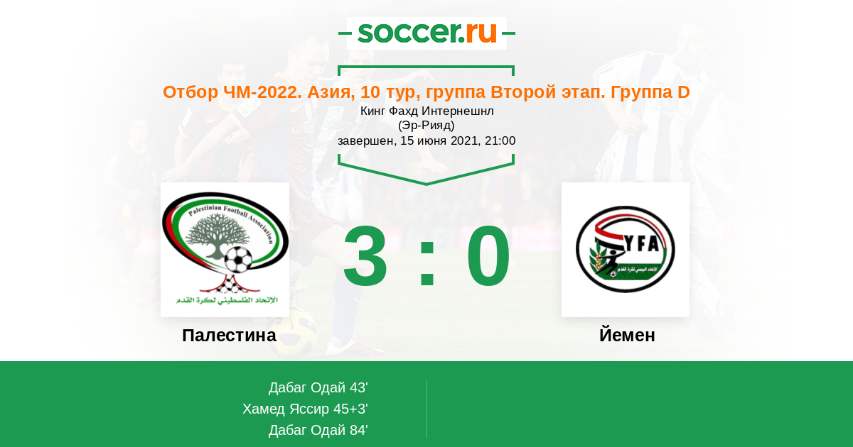 Запасные: 20 Катмиш Ахмед (с 63'), 19 Мусса Бадр (с 63'), 9 Сейям Тамер (с 63'), 6 Харуб Одай (с 78'), 23 Дарвиш Мухамад (с 85'), 15 Савафта Амид, 16 Махаджнех Ганем, 12 Салем Халид Джамал, 18 Дарвиш Мохамад, 14 Самар Мохаммед, 1 Абдухаммад Тавфик Али, 17 Фарави Муса