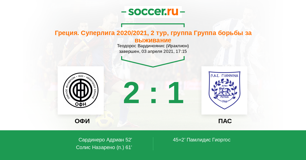Запасные: 99 Атанасиу Василис, 33 Хутесиотис Элефтериос, 15 Эррамуспе Родриго, 24 Ойкономопулос Антониос, 25 Панургиас Пантелис, 23 Пилиос Ставрос, 80 Лиасос Ангелос, 17 Наумец Владислав (с 46'), 20 Милинчану Николай (с 58')