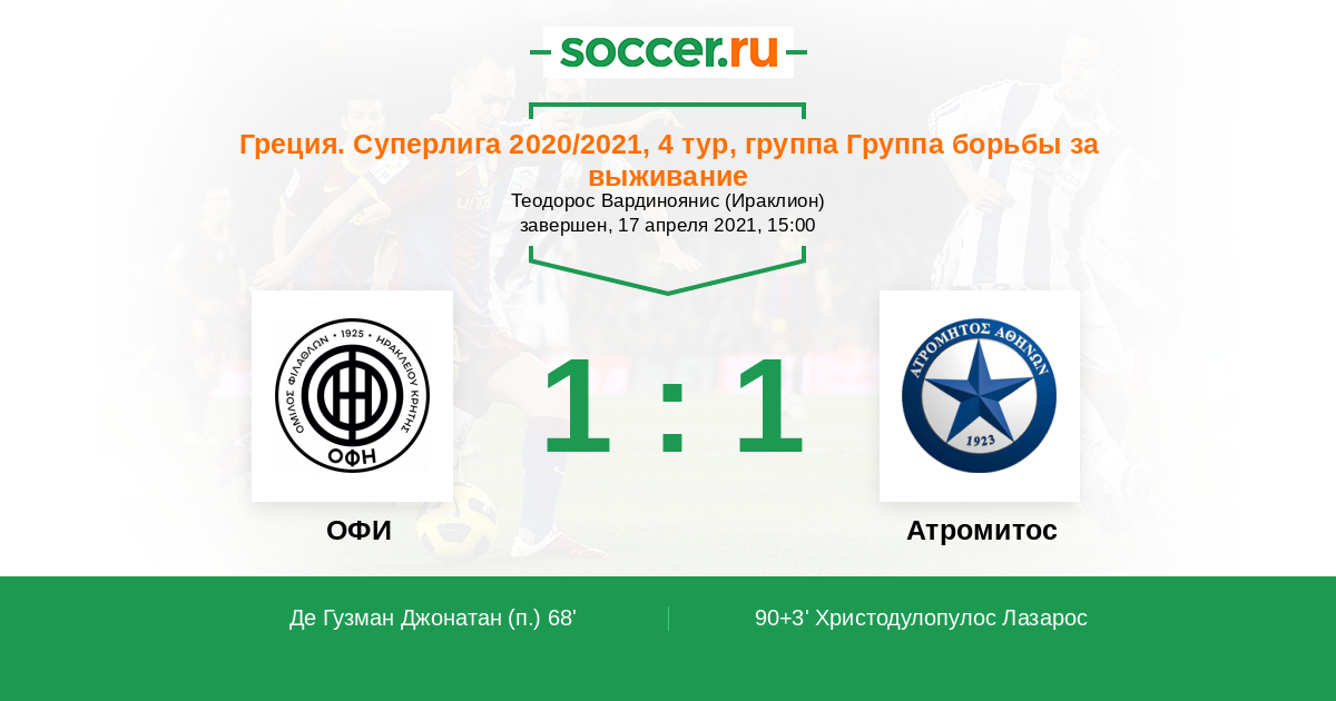 90+3' (1:1) Христодулопулос Лазарос (77) (Рабельо Брайан (10))