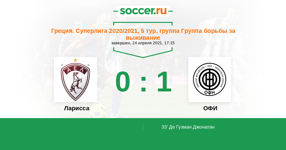 33' (0:1) Де Гузман Джонатан (33) (Коровесис Николаос (34))