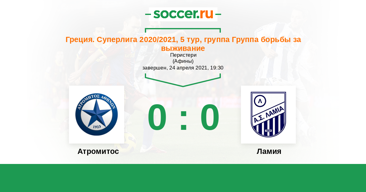 Запасные: 13 Теодоракис Христос (с 35'), 29 Струнгис Стефанос, 50 Томашевич Йосип, 11 Агаев Амир, 77 Христодулопулос Лазарос (с 82'), 23 Коцопулос Костас, 14 Муньис Хуан, 16 Нацос Спиридон (с 56'), 7 Эдомвойни Брайт