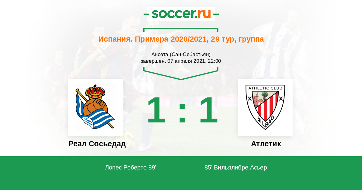 89' (1:1) Лопес Роберто (28) (Субельдия Игор (5))