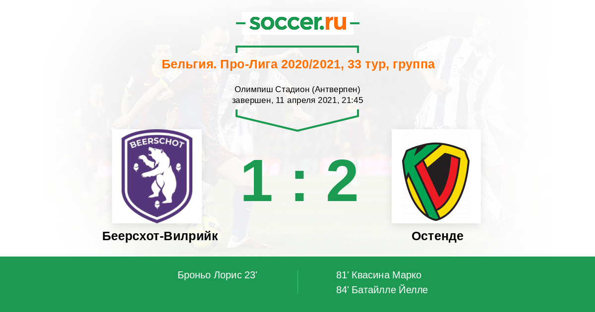 23' (1:0) Броньо Лорис (92) (Ван ден Берг Ян (2))