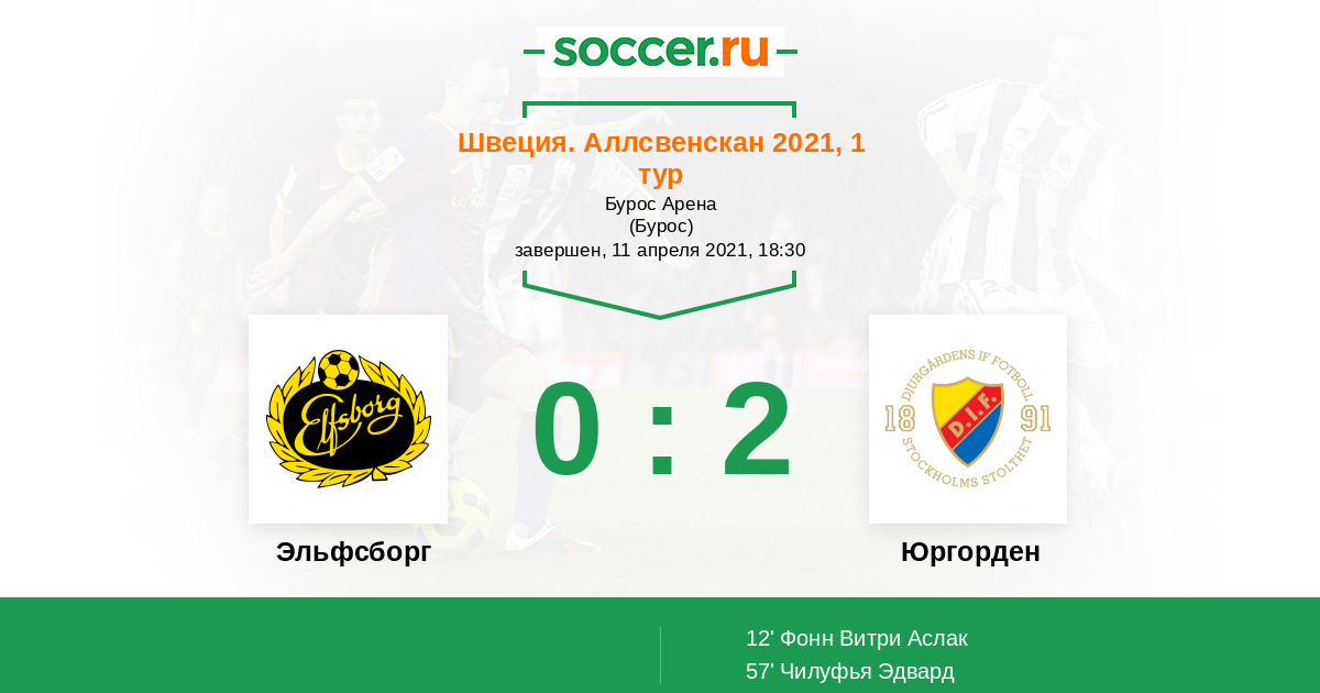 57' (0:2) Чилуфья Эдвард (14) (Холмберг Карл (17))