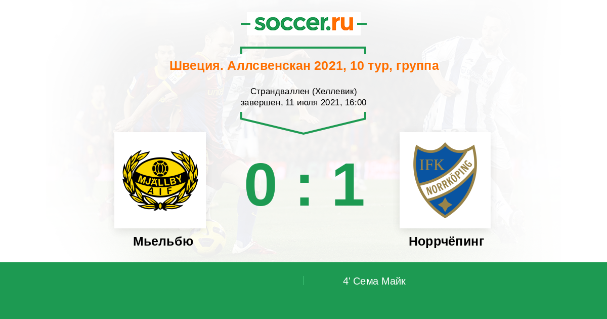 4' (0:1) Сема Майк (23) (Йоханессон Исак (8))