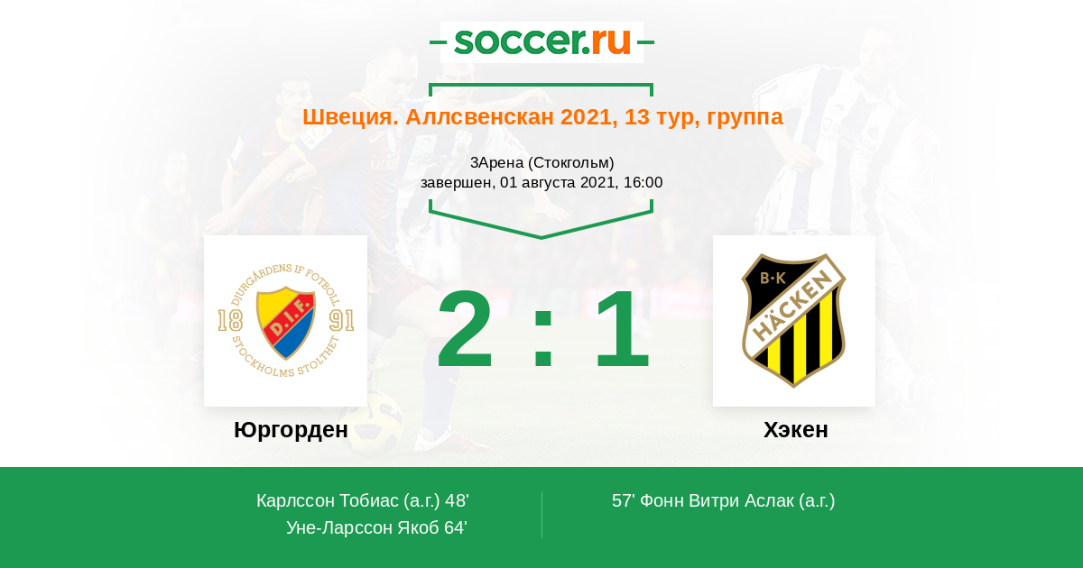 48' (1:0) Автогол Карлссон Тобиас (22)