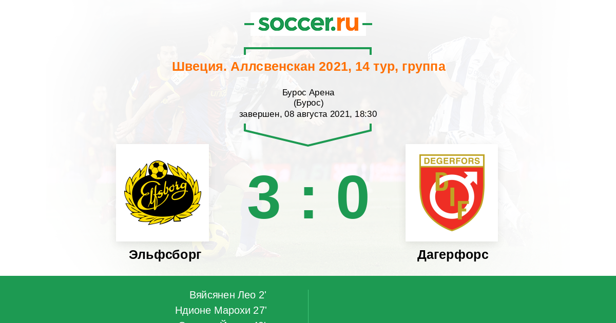 2' (1:0) Вяйсянен Лео (15) (Бернхардссон Александер (12))