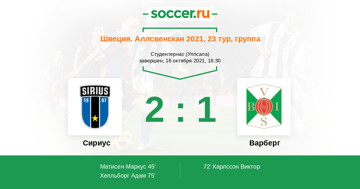 72' (1:1) Карлссон Виктор (21)