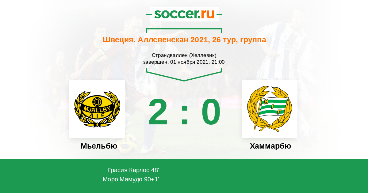 90+1' (2:0) Моро Мамудо (10) (Йоханссон Херман (14))