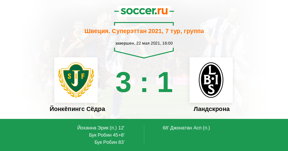 83' (3:1) Бук Робин (19) (Свенссон Йеспер (12))