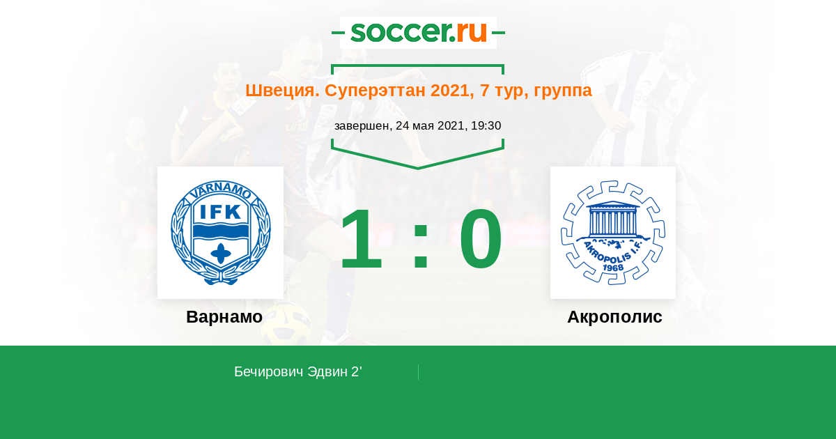 Запасные: 22 Альвбаге Джон, 19 Лепик Кристофер (с 67'), 12 Линдквист Никлас (с 55'), 10 Маттссон Линус (с 86'), 6 Альборнос Маурисио, 13 Сиводелов Кристиан (с 67'), 23 Некруф Ламин (с 86')