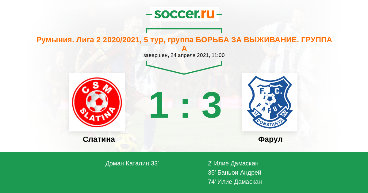 Запасные: Карабела Юлиан (с 58'), Греу Разван (с 58'), Русу Влад (с 70'), Мазараче Симон (с 70'), Пеливан Ионуц (с 78')