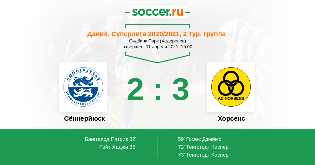 72' (2:2) Тенгстедт Каспер (17) (Якобсен Якоб (15))