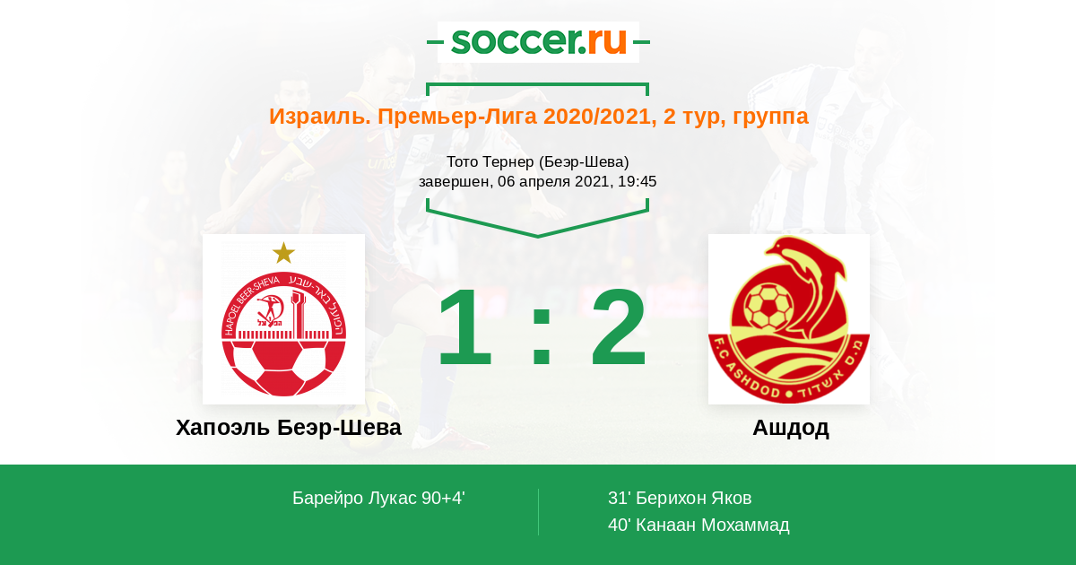 40' (0:2) Канаан Мохаммад (6) (Берихон Яков (77))