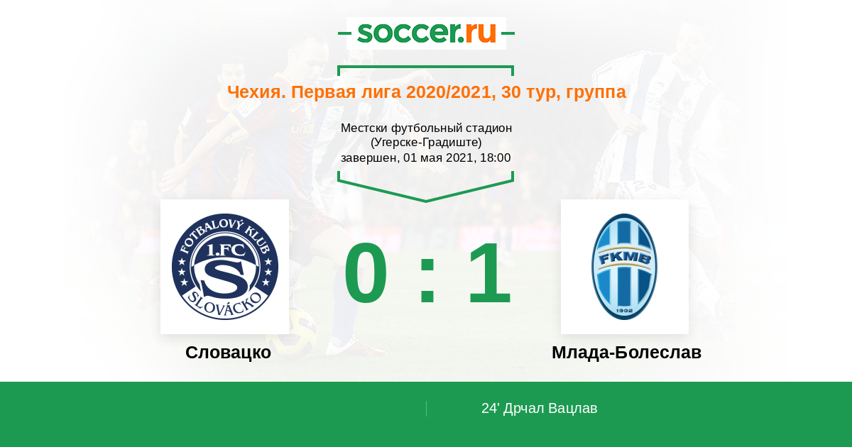 24' (0:1) Дрчал Вацлав (7) (Матейовски Марек (8))