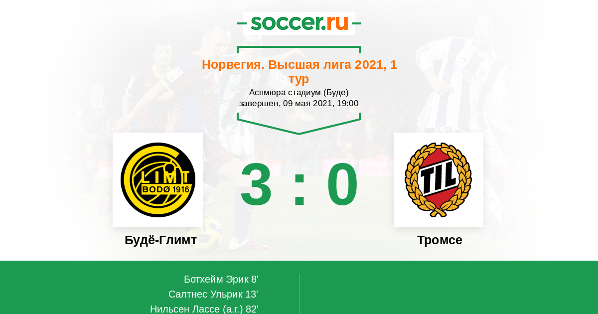 13' (2:0) Салтнес Ульрик (14) (Фет Сондре (19))