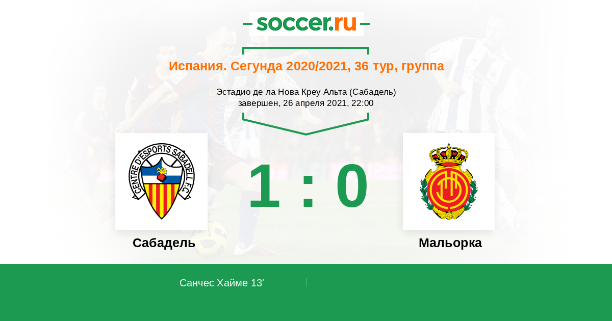 13' (1:0) Санчес Хайме (5) (Фернандес Хоакин)
