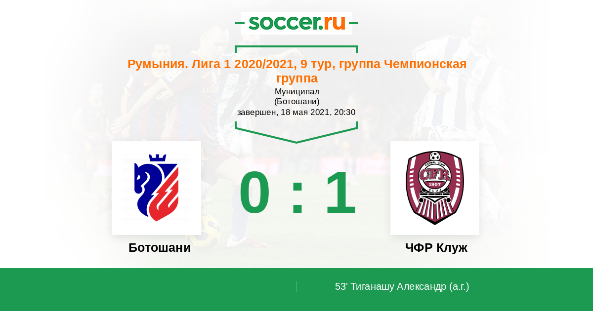 53' (0:1) Автогол Тиганашу Александр (30)